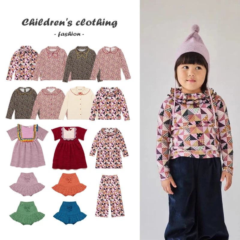 2025 Spring New Children's Clothing Fashion Print Girls' Bow Top Pants Girls' Knitted Dress Short Skirt Baby Outfit Set