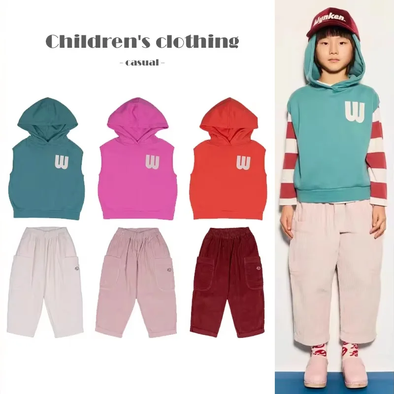 2024 Baby Autumn Clothes Fashion Trend Boys' Sleeveless Sweatshirt Corduroy Pants Baby Girls Hoodie Striped T-shirt Kids Clothes