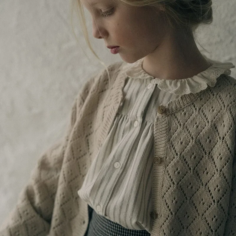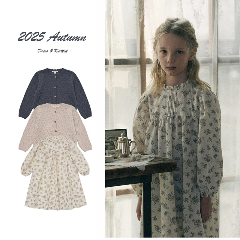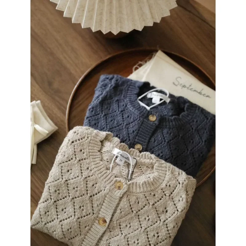 Long Sleeve Dress Girl Cardigan Autumn LOU 2025 New Girls Knitted Hollow Cardigan Thin Jacket Knit Sweater Kids Clothes