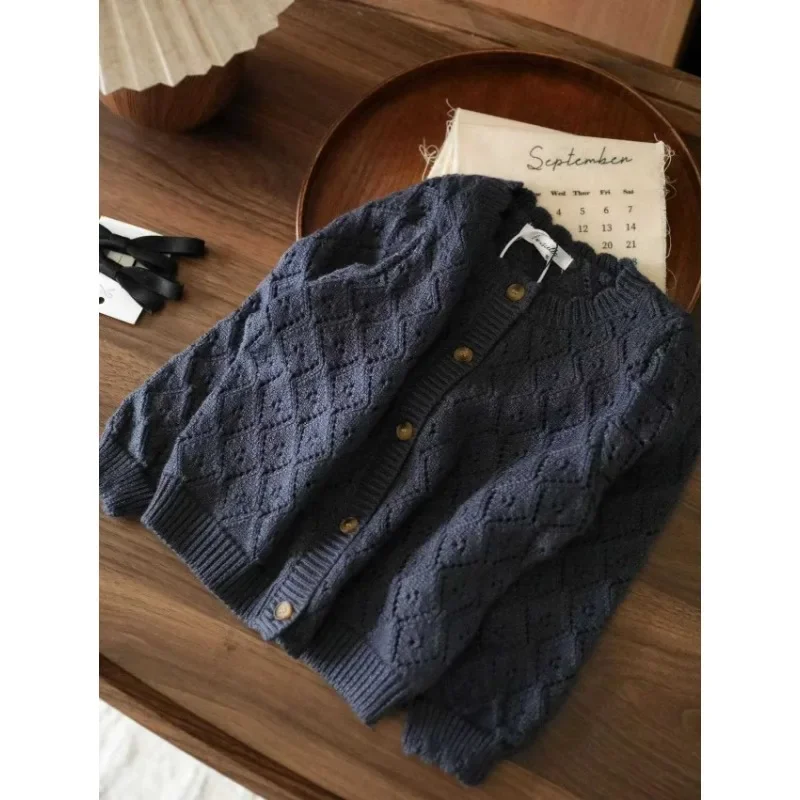 Long Sleeve Dress Girl Cardigan Autumn LOU 2025 New Girls Knitted Hollow Cardigan Thin Jacket  Knit Sweater Kids Clothes